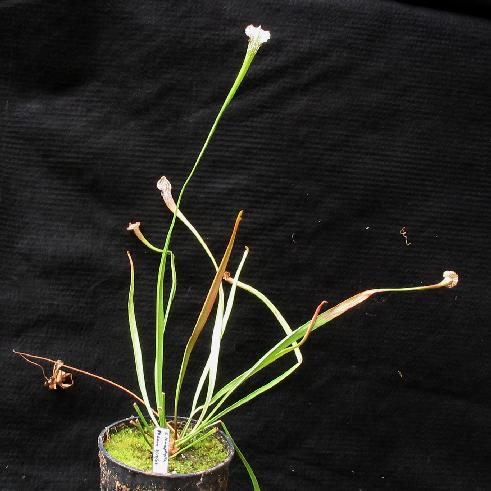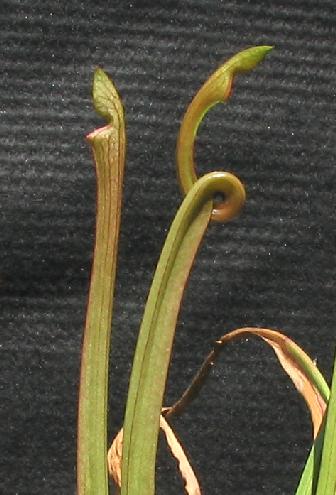 The plant above is grown from seed and received from Ron Lane as #80 on 20 March 03. The plant photo on the left was taken on 27 September 03. The photo on the right is of a strange loop in one of the new pitchers and was taken on 24 April 04.
