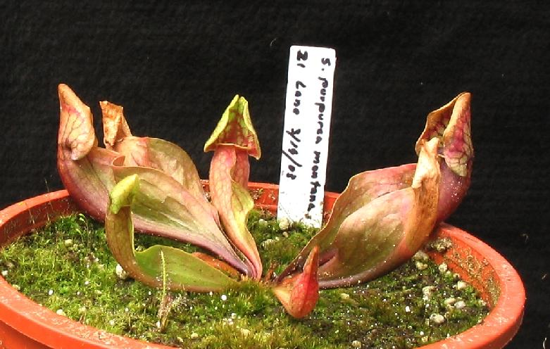 The plant below was received from Ron Lane on 20 March 03. Lane purchased the plant from P. Sheridan, which Sheridan received as seedlings from ABG from Henderson County, NC. The first photo was taken on 27 September 03; the second on 8 August 04.
