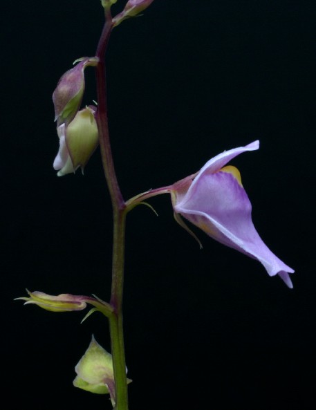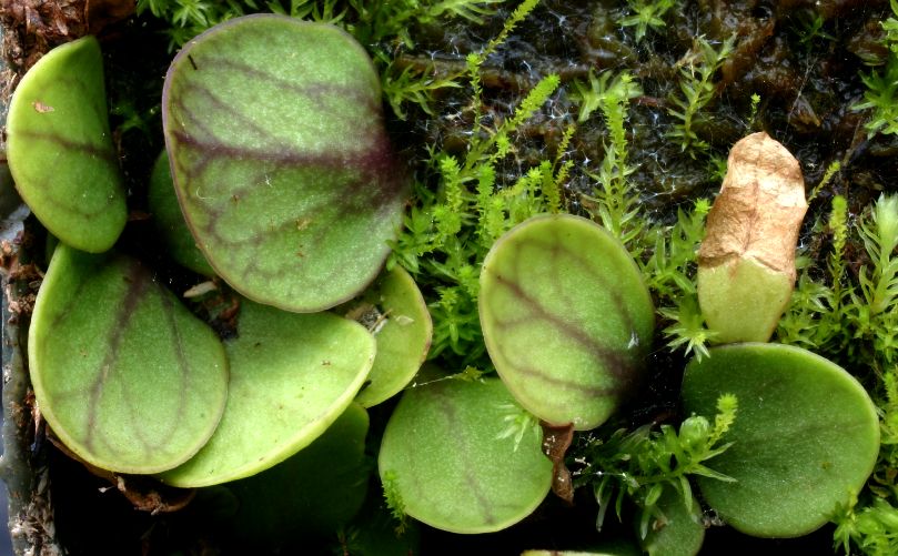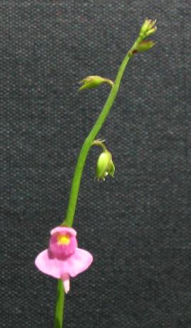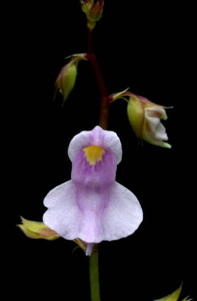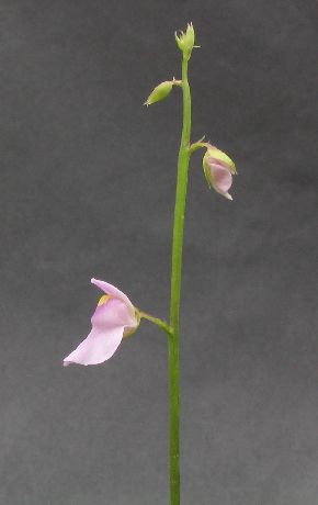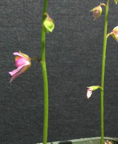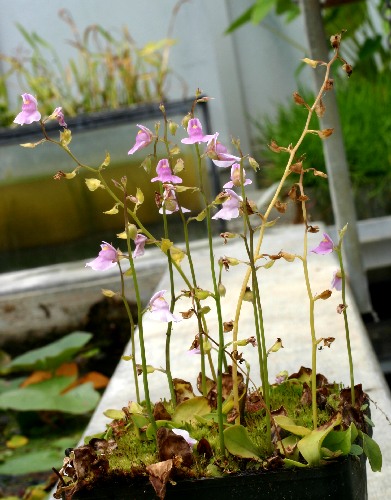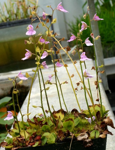 The ICPS database states: "I used the tentative, descriptive phrase "purple veins" to describe one commonly cultivated form. This form has petiolate leaves with a oval lamina that are veined throughout with deep purple pigmentation (see Carniv.Pl.Newslett.21:10, Figure 1:1). The flowers are large, and the apron-like lower corolla lobe hangs down and nearly completely hides the spur. The corolla is pink, but with a yellow patch (edged in white) on the proximal palate bulge (see Carniv.Pl.Newslett.21:12, Figure 3). This plant is being established as the cultivar [Utricularia 'Yog-Sothoth' {B.Meyers-Rice}]."